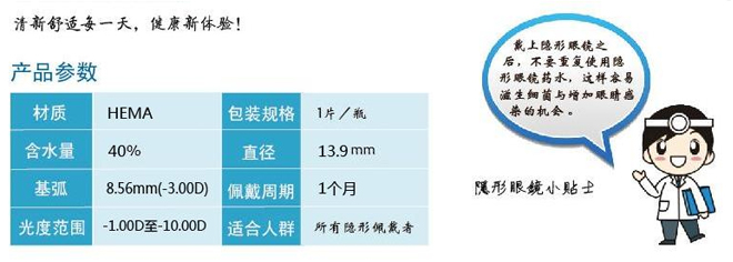 ★成熟而稳定的离心浇铸工艺,镜片成型性好,吸附性佳,易配戴,可矫正低度散光