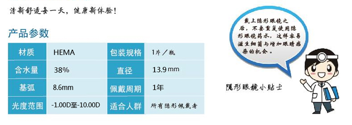 ★低含水材料中添加保湿成份,锁住水份,配戴清润、舒适,保湿一整天